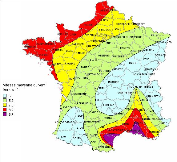Carte de la vitesse des vents – Source: http://www.meteo10.com